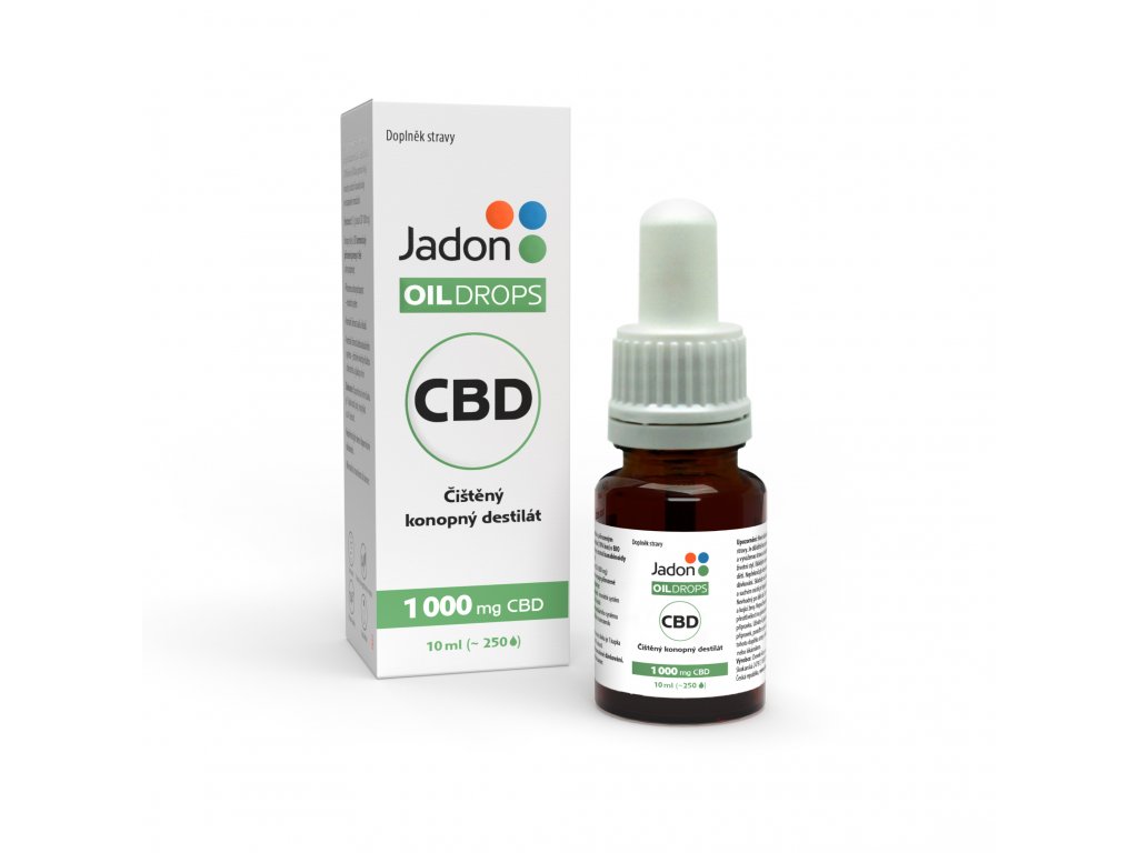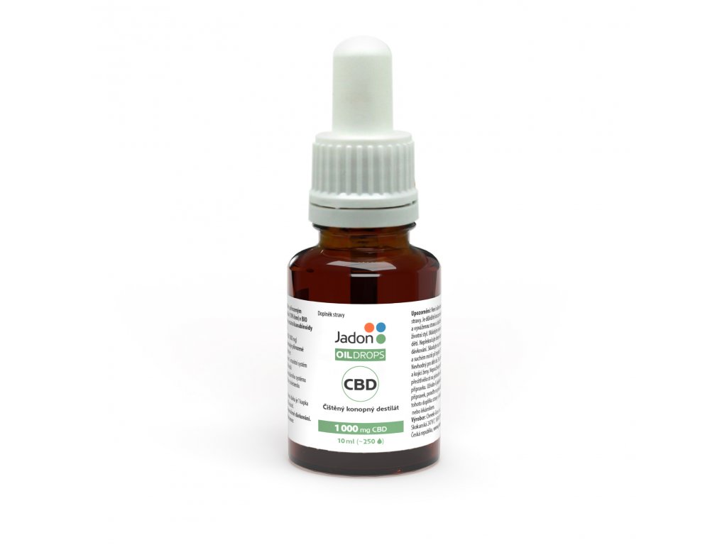 Čištěný konopný destilát s obsahem fytokanabinoidů (CBD ve full spektru) a ostatních aktivních látek technického konopí (flavonoidy a terpeny…). Jadon OIL DROPS 10%/10ml jsou olejové kapky s celkovým obsahem 1 000mg CBD v 10ml (aktivní látkou z konopí BEZ omamných účinků).